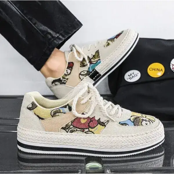 Stay stylish and protected with our Mens Color-Matching Canvas Sneakers. These UV-resistant low-top casual shoes in Beige, Black, and Green feature a breathable canvas upper and a durable rubber sole with braided edges. Perfect for sunny days, they blend vibrant design with functionality, accented by "IMPIALA" branding.