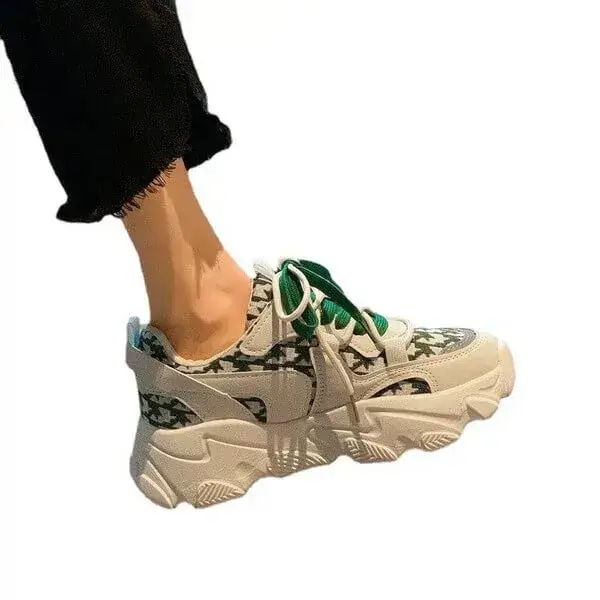 Womens Plaid Platform Sneakers | Water-Repellent Low-Top Sports Shoes in Black, Green