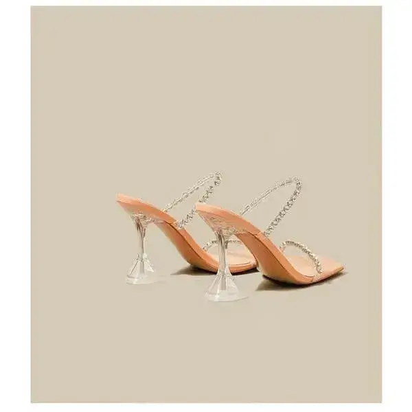 Womens Rhinestone Slippers | UV-Resistant Square-Toe High-Heel Shoes in Black, Peach, White